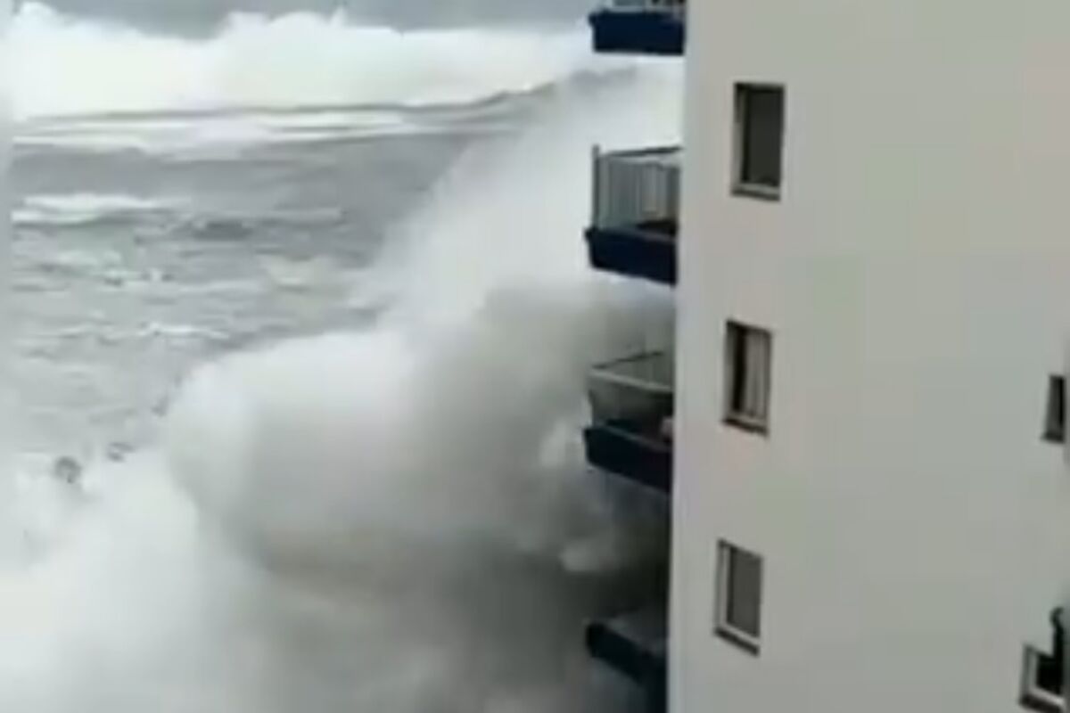 Na snimcima objavljenima na društvenim mrežama vidi se kako talasi, uzrokovani nevremenom, ruše balkon na zgradi.