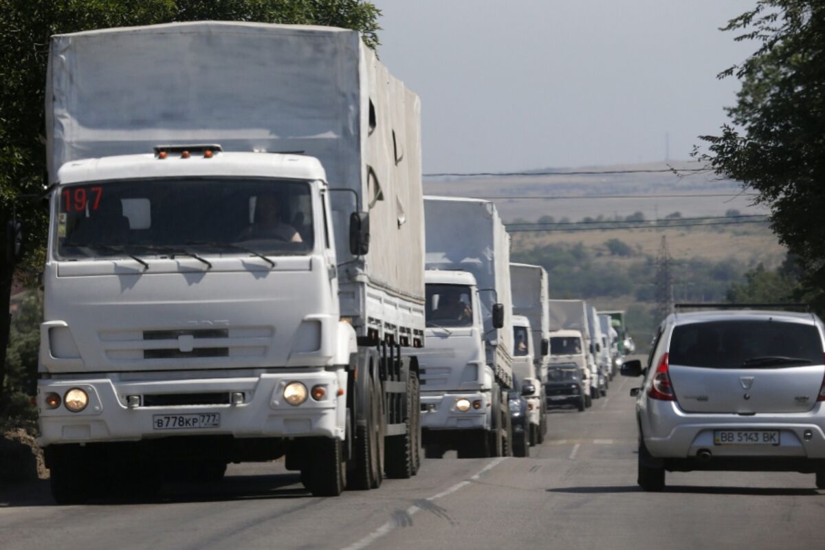 Prvi konvoj humanitarne pomoći stanovništvu istočne Ukrajine Moskva je poslala 12. avgusta u 280 kamiona, a poslije 10 dana čekanja na dozvolu Kijeva da kamioni pređu granicu, Rusi su samoinicijativno ušli u Ukrajinu.