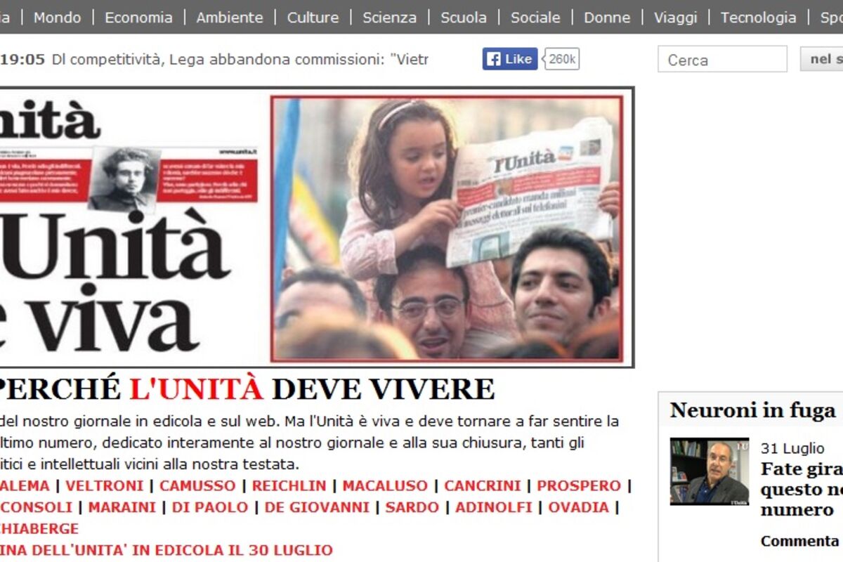 Zvanično glasilo Komunističke partije Italije prestalo je da izlazi, jer akcionari nijesu uspjeli da se dogovore o planu za spasavanje devet decenija starog dnevnika.