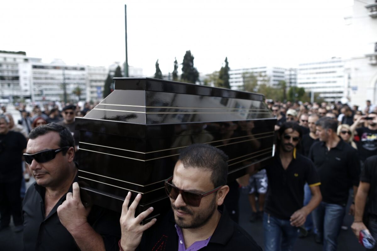 Približno 500 demonstranata, od kojih su mnogi bili obučeni u crno, marširalo je iza mrtvačkih kola na kojima je bio mrtvački kovčeg - simbol propasti komunalne policije, koja treba da bude raspuštena u okviru planova za smanjenje predimenzioniranog javnog sektora u Grčkoj.