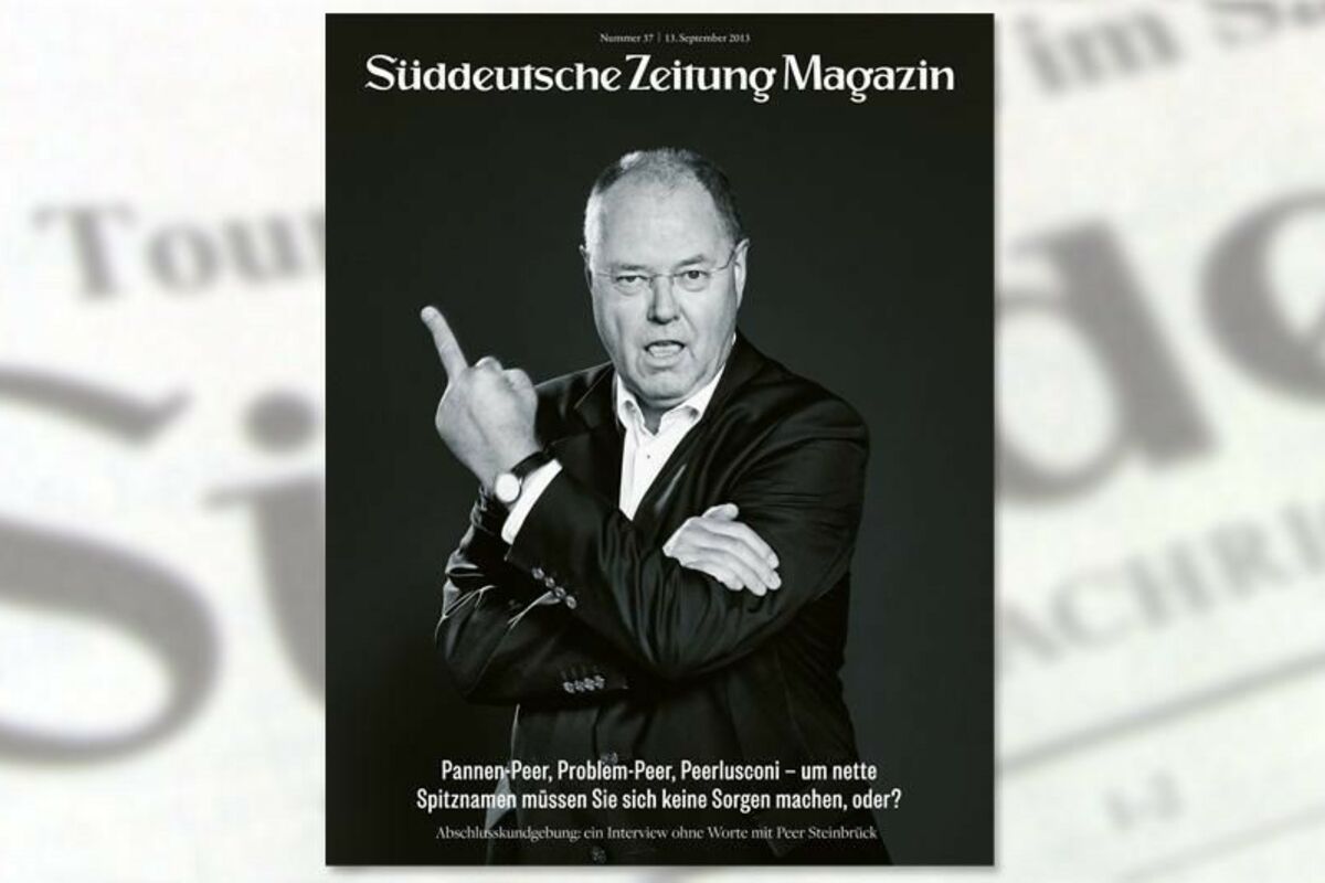 Fotografija na naslovnoj strani izdanja Zuddojče Zajtung Magazina pokazuje Pera Štajnbrika sa srednjim prstom, kao odgovor na njegovu kampanju punu gafova.