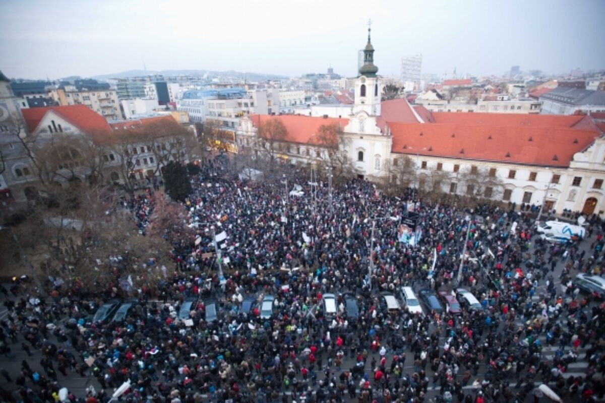 Na hiljade demonstranata protestovalo je, u više navrata, prošlog mjeseca u Bratislavi, a svoj pokret su nazvali "antigorila pokret", i gađali su jajima i bananama zgrade vlade, parlamenta i sjedišta nekih partija.