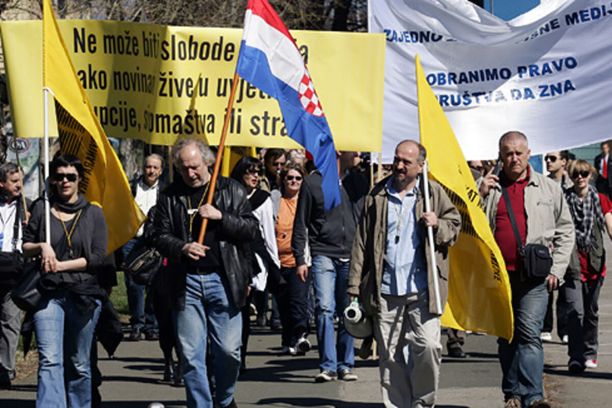 Povorka je u 11 sati krenula od Novinarskog doma prema zgradi "Večernjeg lista" noseći zastave Sindikata novinara Hrvatske (SNH) i transparente s natpisima "Stop cenzuri - sloboda novinarima", "Ne može biti slobode medija ako novinari žive u uslovima korupcije, siromaštva i straha", "Zajedno za nezavisne medije. Odbranimo pravo društva da zna" , itd.