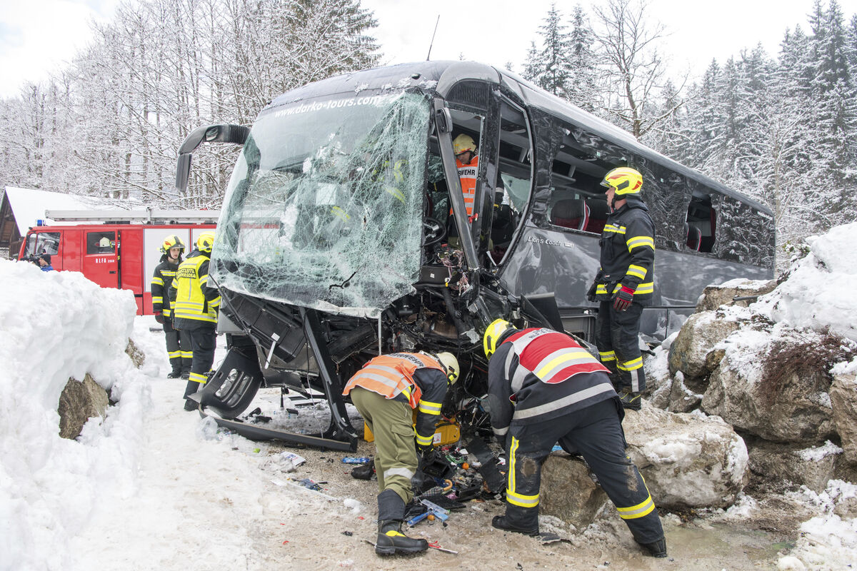 Prema prvim informacijama, autobus koji je bio na putu ka selu Halštat skliznuo je sa klizavog kolovoza od snijega i udario u zid.