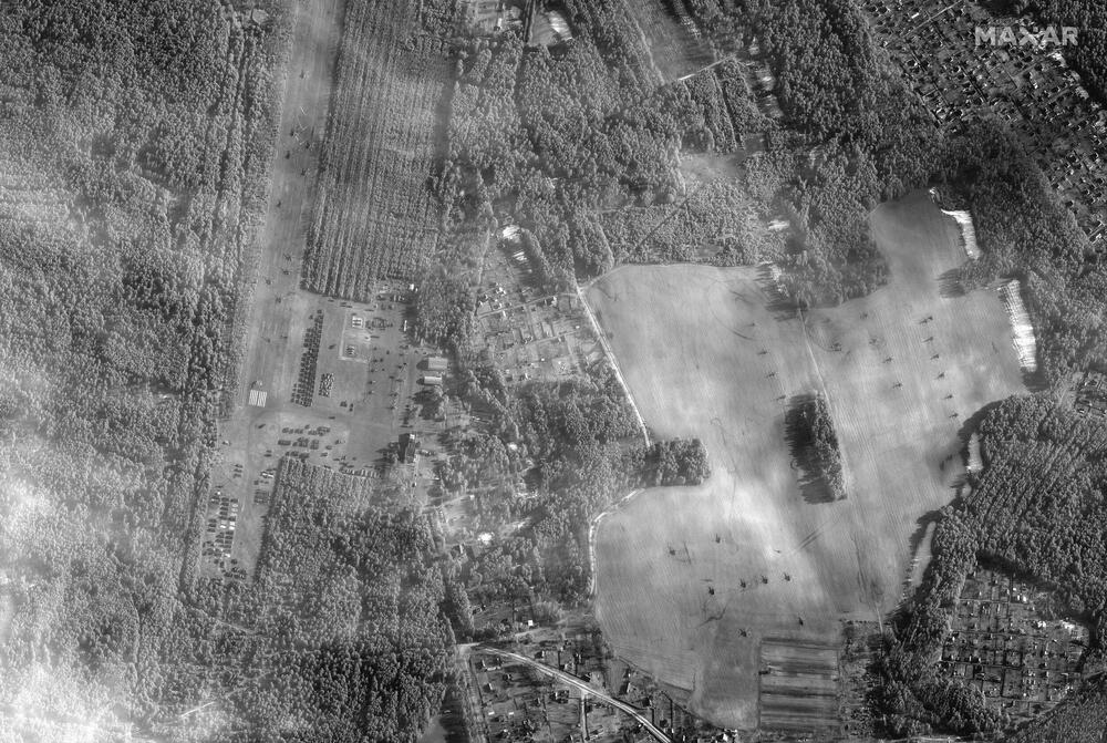 Posljednji satelitski snimci pokazuju jedno veliko raspoređivanja helikoptera u južnoj Bjelorusiji, oko 32 kilometra od granice sa Ukrajinom, saopštila je privatna američka kompanija Maxar.