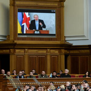 Ukrajinski predsjednik Volodimir Zelenski obratio se britanskom parlamentu 8. marta i takođe je poredio borbu svoje zemlje sa britanskom borbom protiv nacista. Džonson je posjetio Kijev 9. aprila.