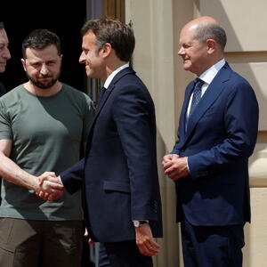 Francuski predsjednik Emanuel Makron, njemački kancelar Olf Šolc i italijanski premijer Mario Dragi susreli su se danas, tokom posjete Kijevu, sa ukrajinskim kolegom Volodomirom Zelenskim.