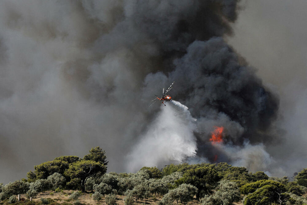 U Grčkoj je gust dim prekrio nebo iznad planine Penteli, 27 kilometara sjeverno od Atine, gdje je blizu 500 vatrogasaca, 120 vatrogasnih vozila i 15 aviona za prevoz vode uspjelo da zaustave širenje šumskog požara.