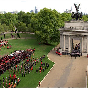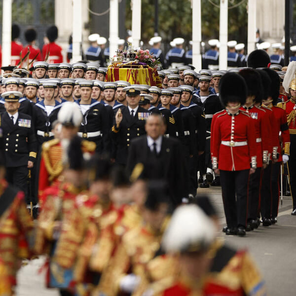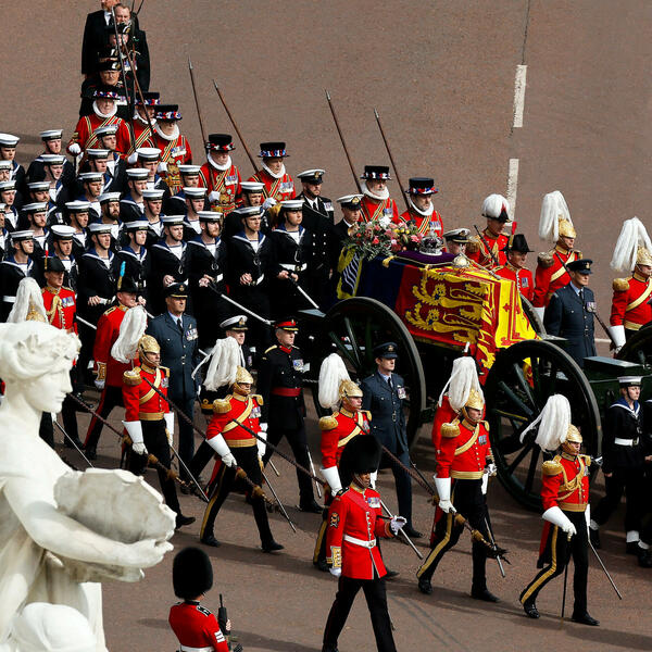 Crkvena ceremonija sahrane kraljice Elizabete Druge u Vestminsterskoj opatiji je završena. Kovčeg se prevozi na lafetu kroz London, pored Bakingemske palate do Velingtonovog slavoluka