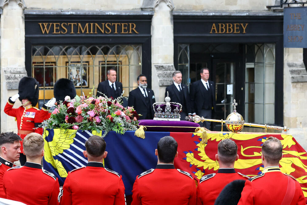 Kovčeg sa tijelom kraljice unijet je u Vestminstersku opatiju, što je ujedno u početak zvaničnog čina sahrane.