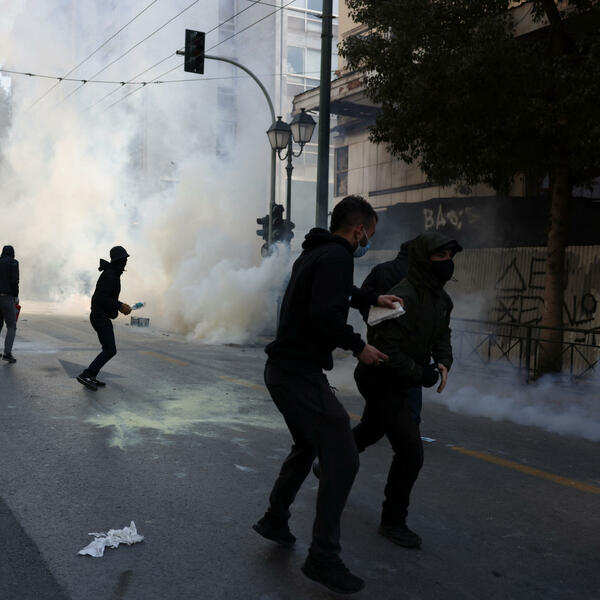 Pet osoba je uhapšeno, a sedam policajaca je tada povrijeđeno pošto je grupa od više od 200 maskiranih, u crno obučenih anarhista koji obično ometaju javne skupove, počela da baca komade mermera, kamenja, flaša i zapaljivih bombi na policajce, koji su ih jurili centralnom avenijom koristeći suzavac, gasne i šok-bombe.