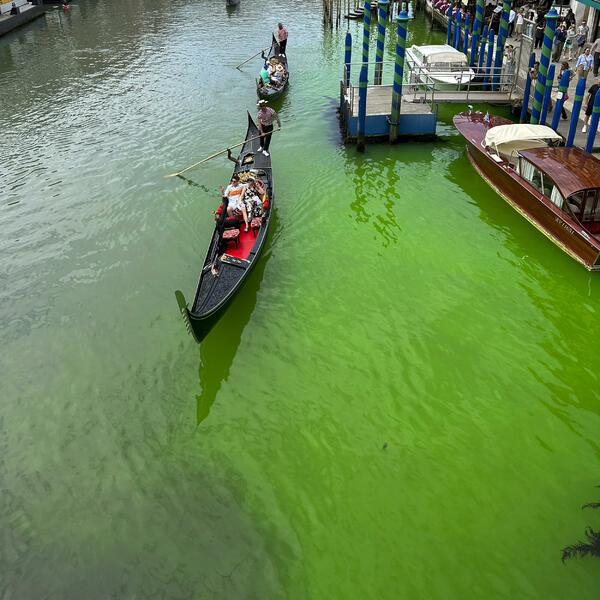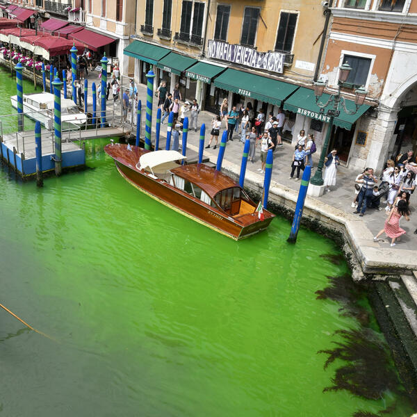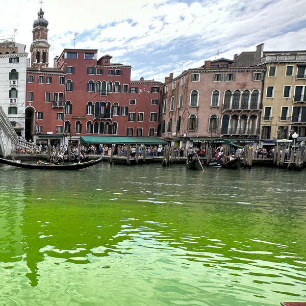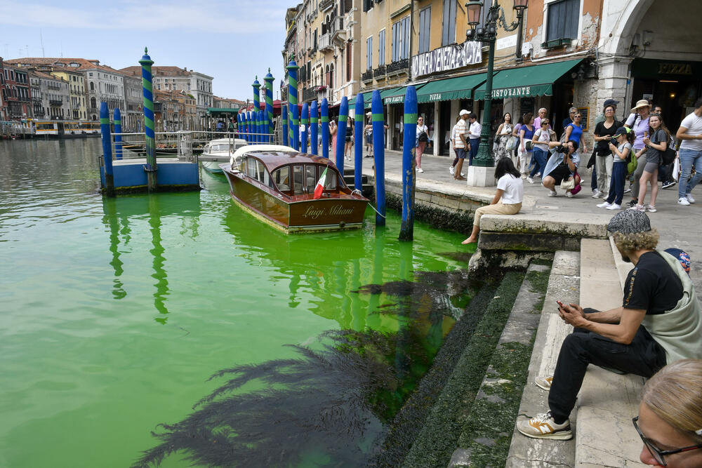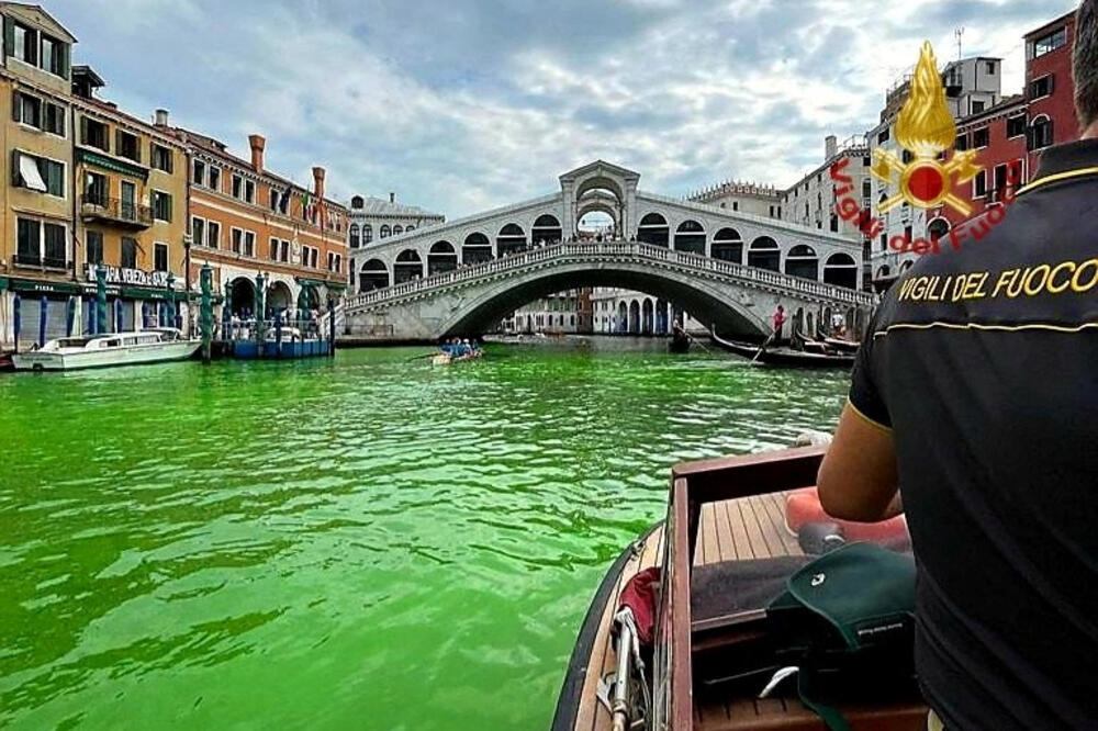 Voda u glavnom kanalu u italijanskom gradu Veneciji postala je juče fluorescentno zelena u oblasti u blizini mosta Rialto i vlasti traže način da uđu u trag uzroku, saopštila je italijanska vatrogasna služba, prenosi agencija Rojters.