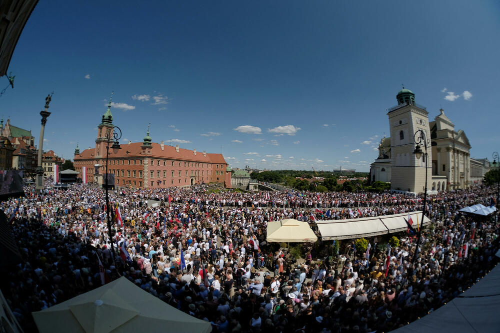 Opozicione partije su u nedjelju održale protestni skup kojem je prisustvovalo pola miliona ljudi. Međutim, PiS-ova kombinacija velike socijalne potrošnje i nacionalizma pokazala se privlačnom u zemlji od 38 miliona stanovnika, koja je članica NATO-a i graniči se sa Ukrajinom.