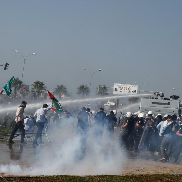 Turska policija upotrijebila je danas suzavac da bi rastjerala skup podrške Palestincima nedaleko od vojne baze Indžirlik, gdje i Sjedinjene Američke Države (SAD) imaju svoje vojnike, javila je agencija Frans pres.
