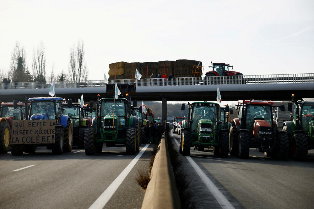 Poljoprivrednici koji protestuju u Francuskoj pokušali su danas da opkole Pariz barikadama svoje mehanizacije da bi izvršili pritisak na Vladu zbog neizvjesne budućnosti svoje djelatnosti uzdrmane posljedicama rata u Ukrajini.