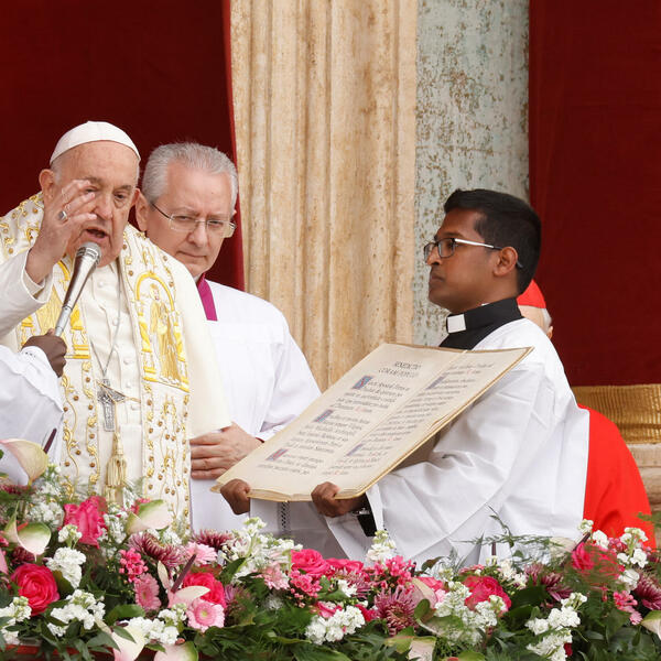 Na misi na Trgu svetog Petra prekrivenog cvijećem u jednoj od najvažnijih liturgija u godini okupile su se desetine hiljada ljudi.