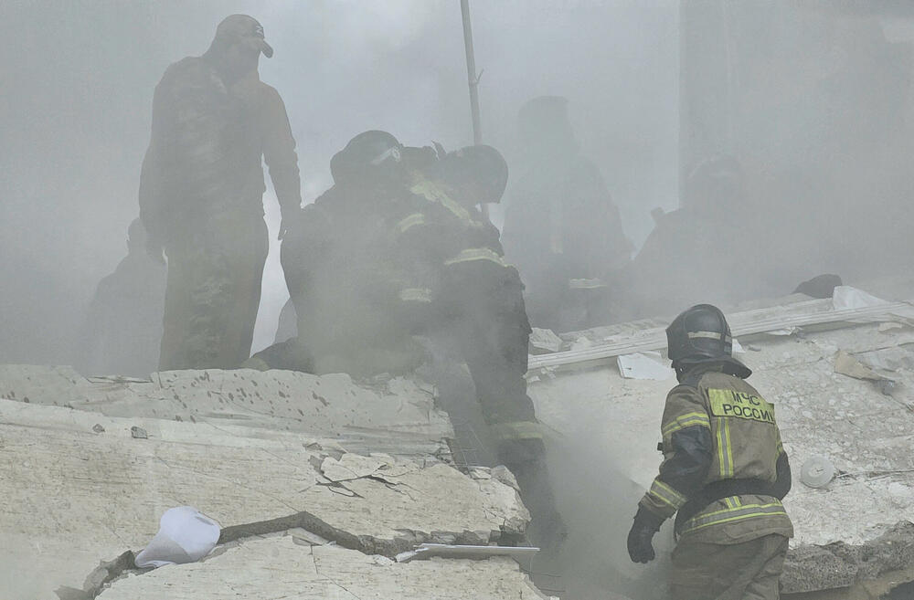 Najmanje sedam ljudi je poginulo, a 17 povrijeđeno kada se dio stambenog bloka srušio nakon što ga je pogodila raketa iz sovjetske ere koju je lansirala Ukrajina, a oborila Rusija, saopštili su ruski zvaničnici, prenosi agencija Rojters.
