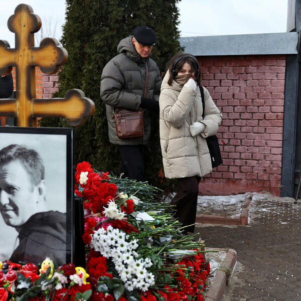 Pravoslavni sveštenik čitao je molitvu kraj groba Navaljnog, prekrivenog cvijećem, uz zvuke plača.
