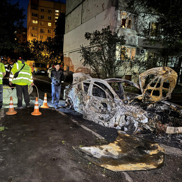 Oko 1.05 noćas dronovi tipa Šahid pogodila su dvije stambene zgrade u kvartu Slobidskji u gradu, izazivajući požar i uništavajući nekoliko privatnih vozila.