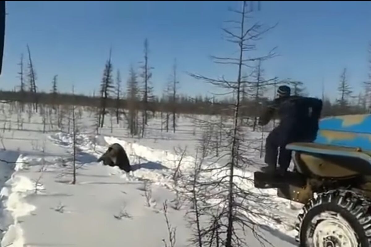 Na snimku koji je ove nedjelje objavljen na YouTube-u vidi se kako je nekoliko teških kamiona jurilo i nekoliko puta pregazilo medvjeda u snijegu.