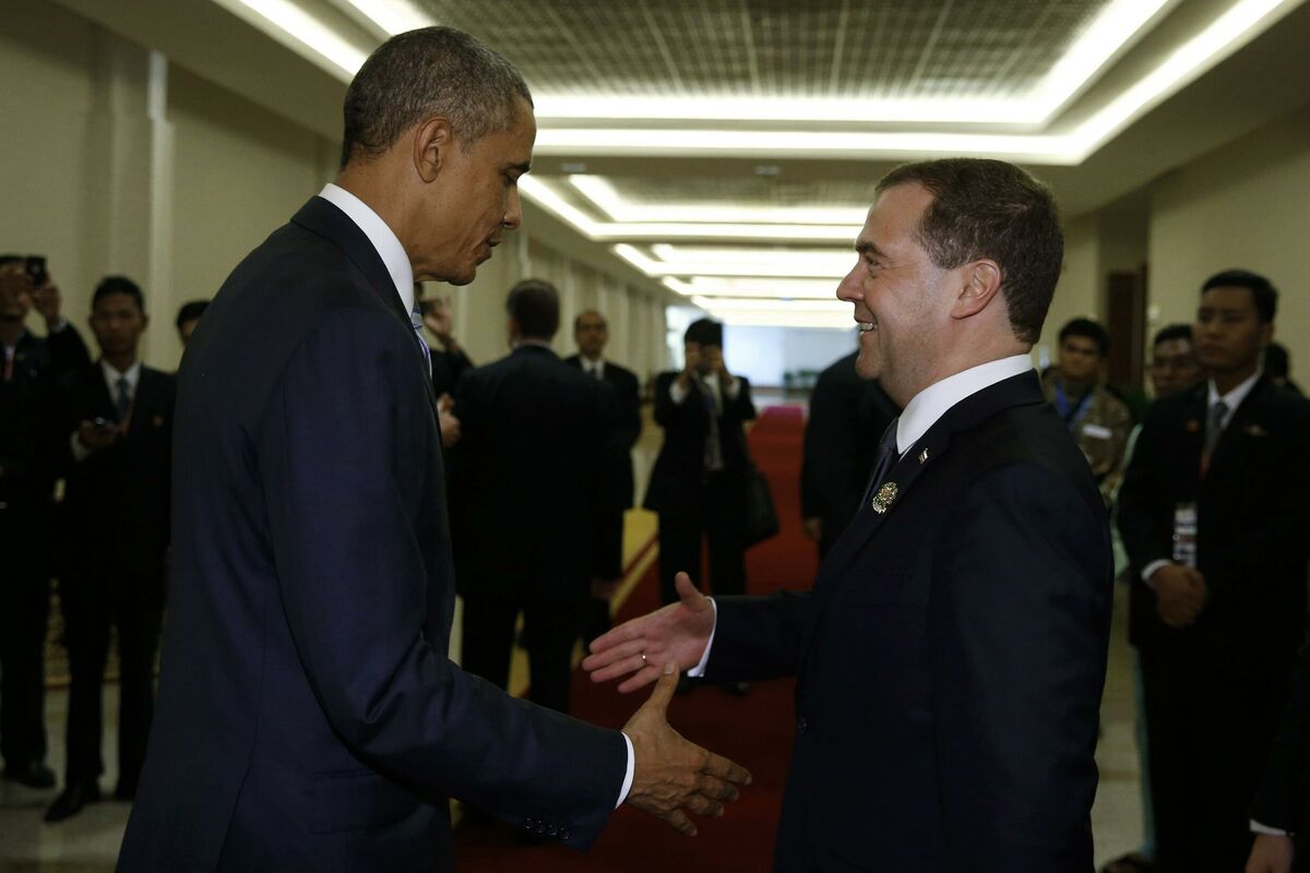 Ruski premijer Dmitrij Medvedev izjavio je poslije kratkog sastanka sa američkim predsjednikom Barakom Obamom u Mjanmaru da bi trebalo ukinuti sankcije Rusiji kako bi se omogućilo rješavanje spora Rusije i Zapada, javlja agencija Interfaks.