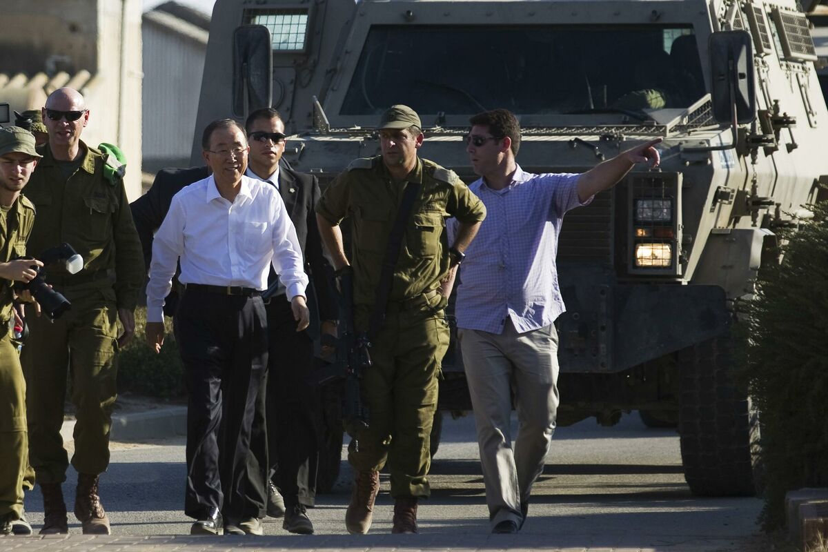 Prije posjete jugu Izraela, Ban je obišao Pojas Gaze razoren u nedavnom ratu izmedju Izraela i Hamasa. On je ocijenio da je razaranje "neopisivo" i mnogo ozbiljnje od onog koje je vidio 2009. godine posle prethodnog sukoba u tom palestinskom području.