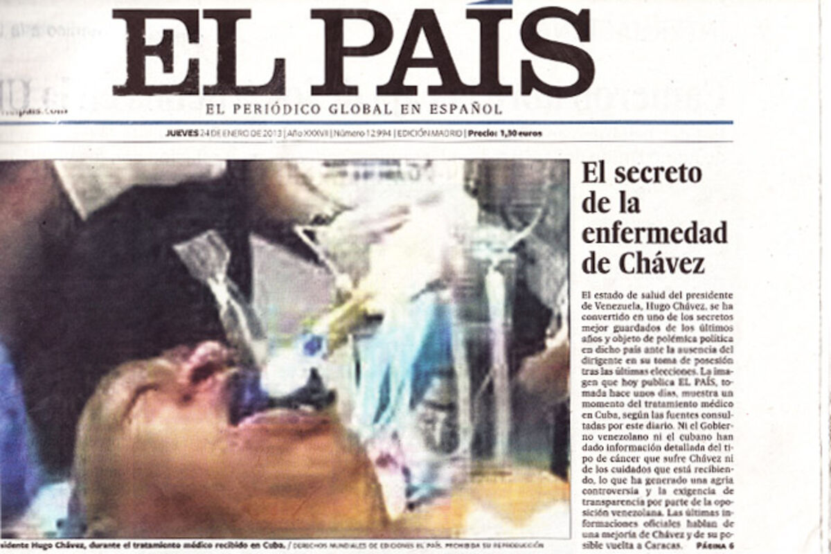 Španski dnevnik "El Pais" povukao je i ponovo odštampao cjelokupno izdanje nakon što su shvatili da se na prvoj strani nalazi lažna "eksluzivna fotografija" bolesnog predsjednika Venecuele Uga Čavesa koji se liječi na Kubi.