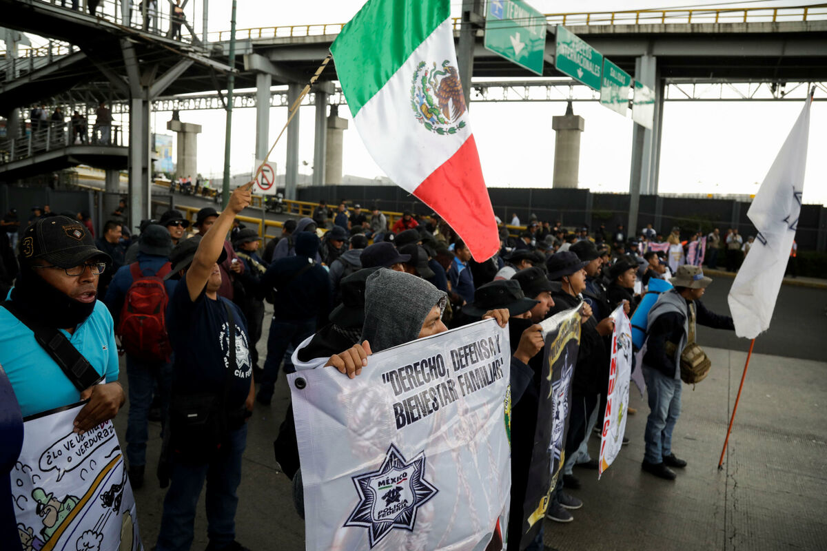 Oko 300 policajaca ne dozvoljava pristup terminalu jedan, odakle kreću domaći i međunarodni letovi, i tako izražava nezadovoljstvo odlukom predsjednika Meksika Andresa Manuela Lopeza Obradora da meksičku federalnu policiju zamijeni novom formacijom, Nacionalnom gardom.
