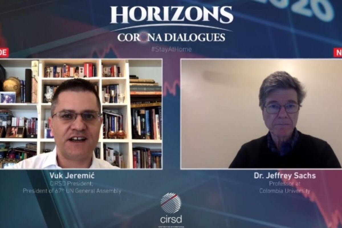 Poznati svjetski ekonomista i profesor Univerziteta Kolumbija Džefri Saks izjavio je u razgovoru sa predsjednikom Centra za međunarodne odnose i održivi razvoj (CIRSD) Vukom Jeremićem da je koronavirus u Njujorku izazvao posljedice poput razornog zemljotresa ili cunamija, a da će kriza u svijetu nakon pandemije trajati najmanje dvije godine i da "stvari više nikada neće biti iste, jer će se stvoriti nova normala", prenosi portal televizije N1.