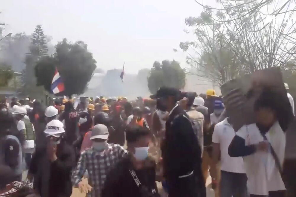 Prethodno su tokom dana studenti i drugi civili učestvovali u jednom od mnogih dnevnih protesta širom zemlje protiv vojnog preuzimanja vlasti 1. februara kada je svrgnuta izabrana šefica civilne vlade Aung San Su Ći.