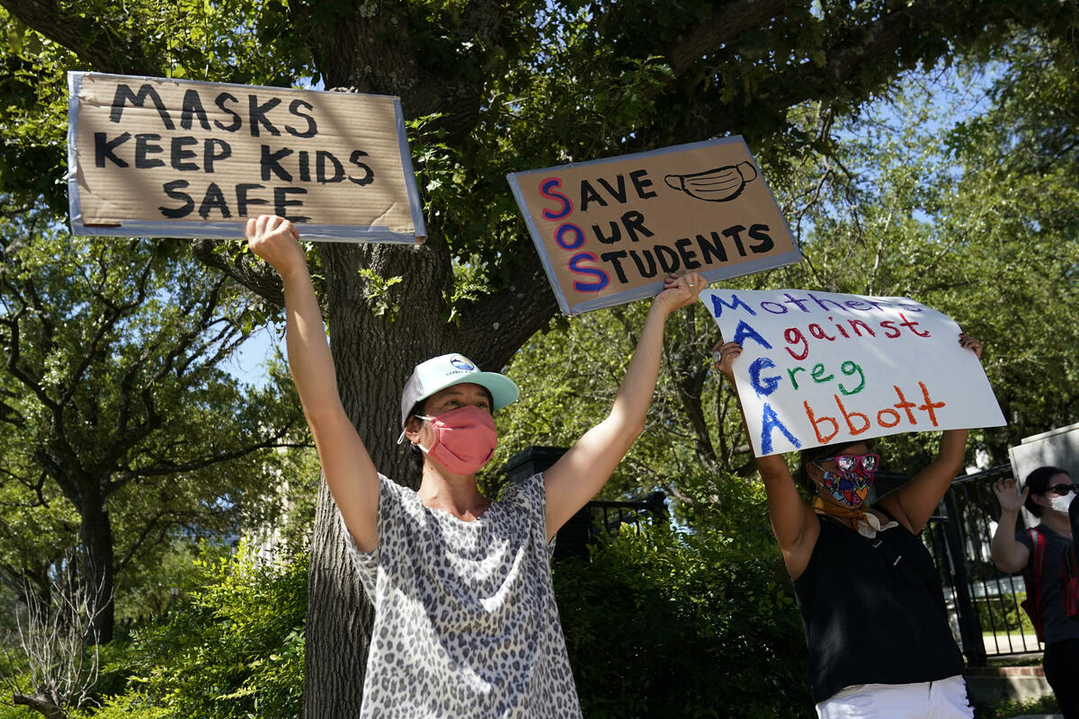 Maske su predmet žestokog sporenja između političara i roditelja, a pojedini republikanski guverneri su ukinuli obavezu nošenja maski uprkos tome što je predsjednik Džon Bajden zaprijetio da će protiv njih pokrenuti zakonski postupak.