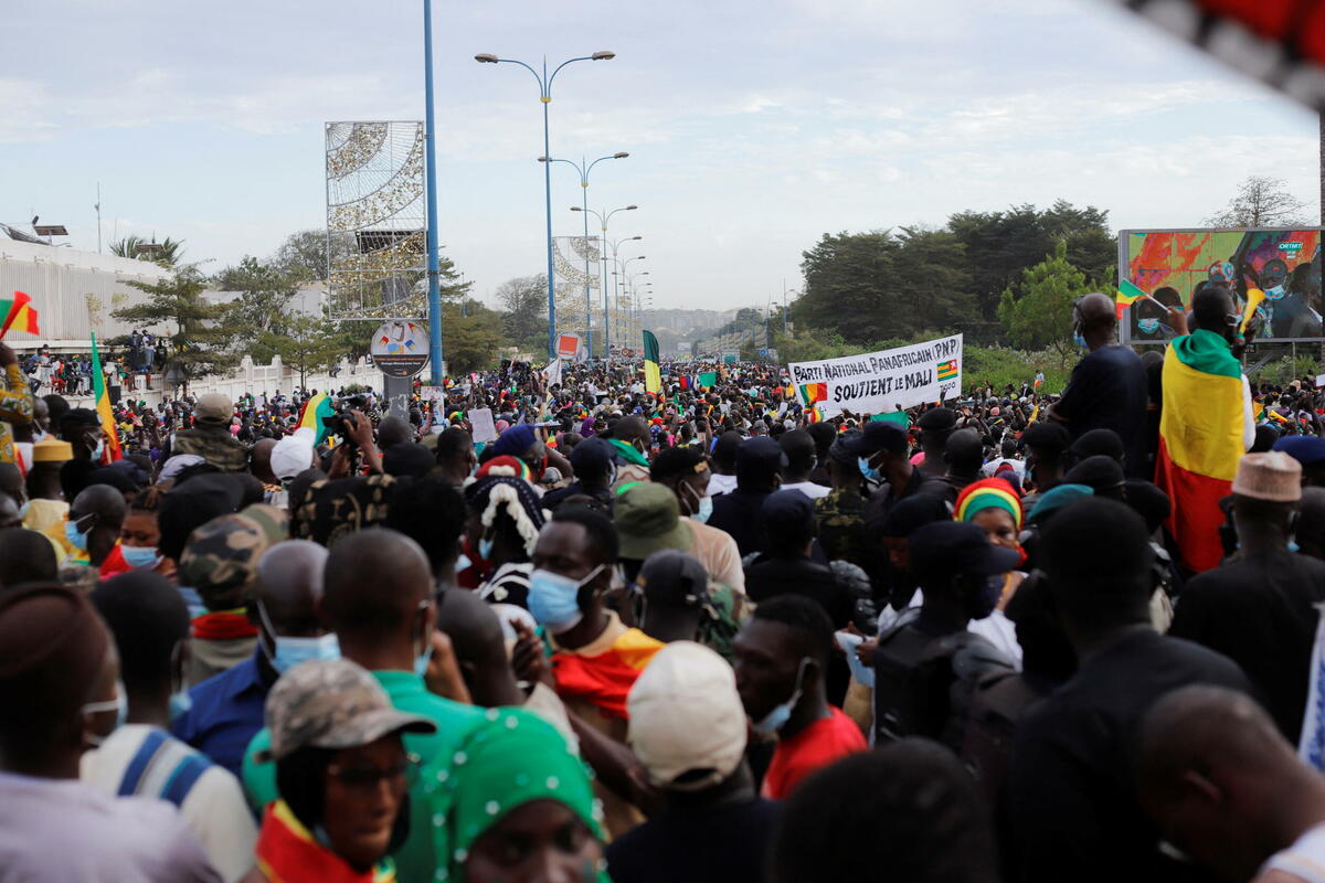 Demonstracijama na Trgu nezavisnosti u Bamaku prisustvovao je premijer i ministri u prelaznoj vladi Malija, pukovnik Asimi Goita, koji je predvodio vojni puč prošle godine.