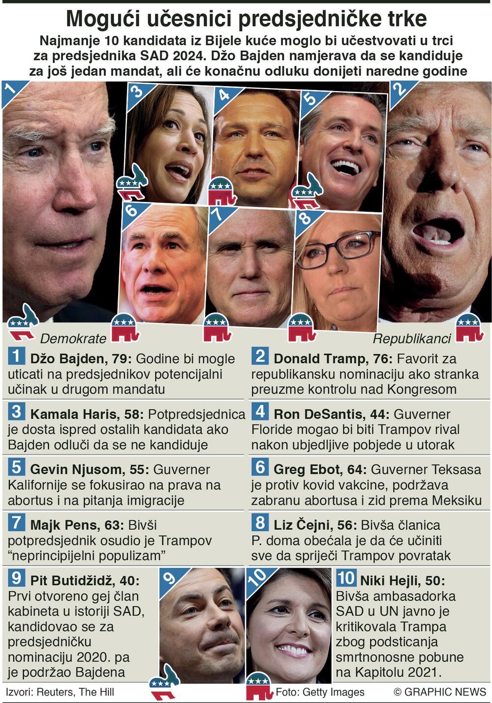 Čovjek koji je pobijedio Trampa 2020, aktuelni predsjednik Džo Bajden, rekao je ove nedjelje namjerava da se ponovo kandiduje, ali da će konačnu odluku donijeti početkom sljedeće godine. On je već najstariji predsjednik u američkoj istoriji i 2024. će imati 81 godinu.