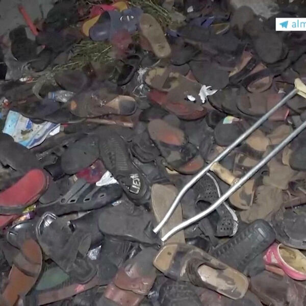 Na drugom snimku nakon stampeda vidi se mnoštvo odbačenih cipela, odjeća, štake, a forenzičari prebiraju lične stvari.