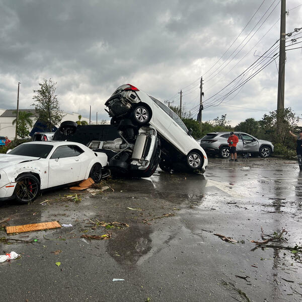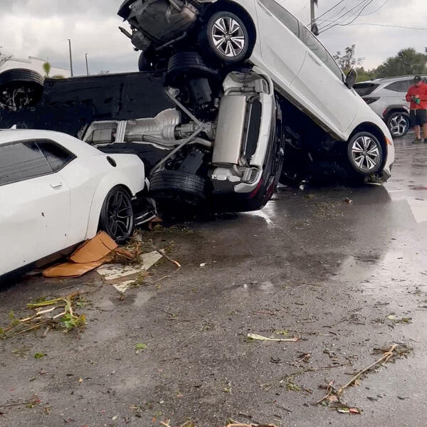 Jake kiše i vjetar praćeni tornadom pogodili su danas Palm bič gardens na Floridi, prevrćući automobile i lomeći drveće, a mnogo kuća je oštećeno.