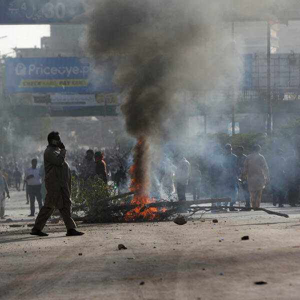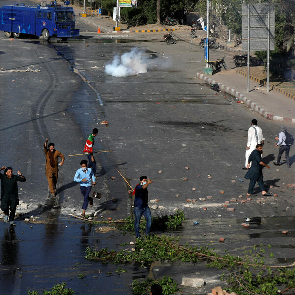 U lučkom gradu Karačiju policija je upotrijebila pendreke i suzavac da rastjera stotine Kanovih pristalica koji su se okupili na jednom od glavnih puteva.