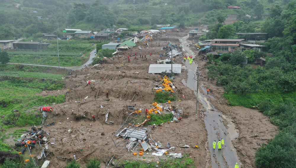 Danas je otkazano 20 letova, a obustavljena je i redovna željeznička linija i neke linije brzih vozova, saopštilo je ministarstvo. Južnokorejska meteorološka agencija saopštila je da će u nekim dijelovima zemlje i dalje padati jaka kiša do sjutra. Predsednik Ioon Suk Leol, koji je od danas u posjeti Ukrajini, zatražio je od premijera Han Duck-Sooa da mobiliše sve raspoložive resurse za odgovor na katastrofu, saopštila je Junova kancelarija.