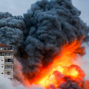 U Gazi, crni dim i narandžasti plamen su se nadvijali u večernje nebo sa visokog tornja pogođenog u izraelskom napadu odmazde.