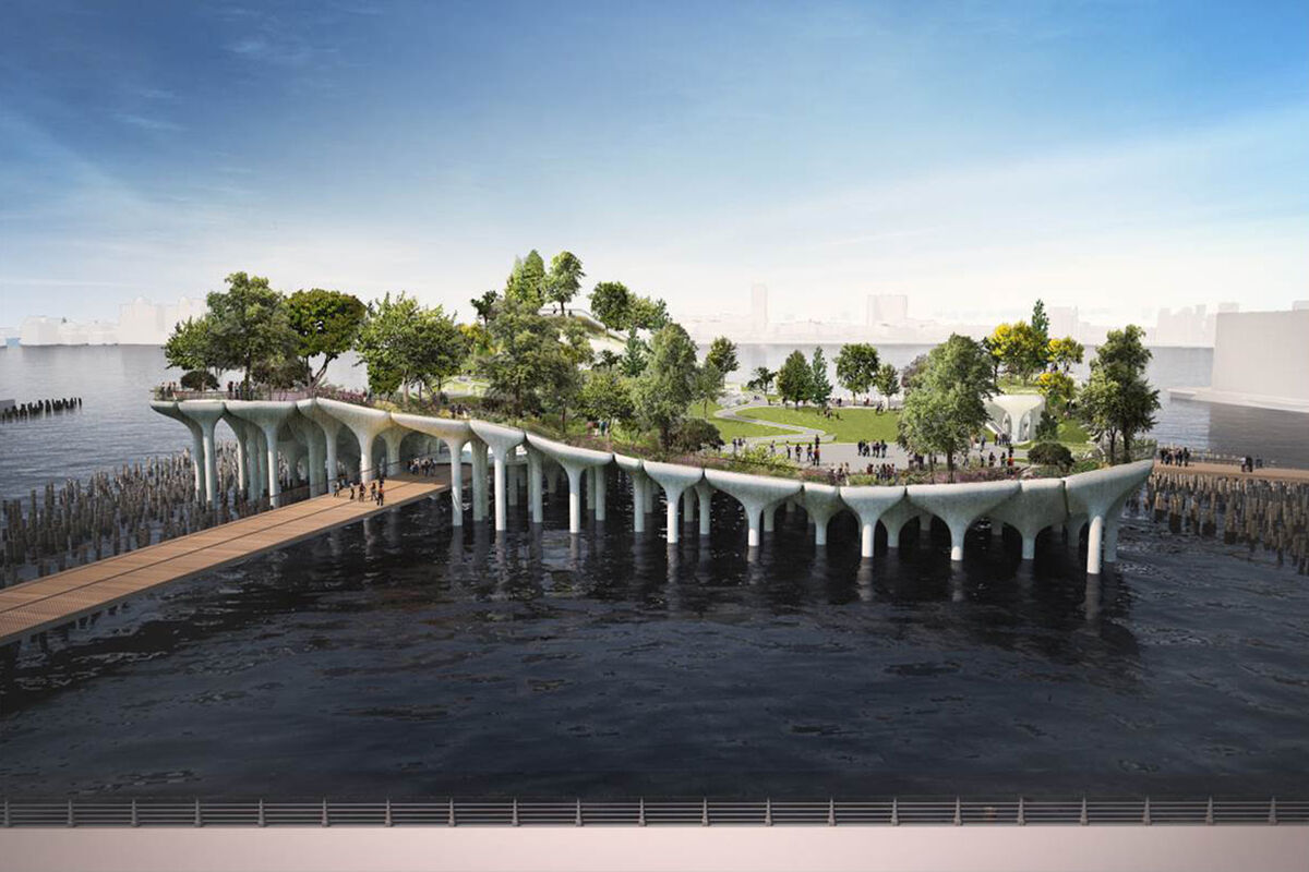 Plan podrazumijeva izgradnju parka na stubovima nalik pečurkama iznad rijeke Hadson, sa prostorima za ples, pozorište i muzičke nastupe, na mjestu oronulog pristaništa na Menhetnu.