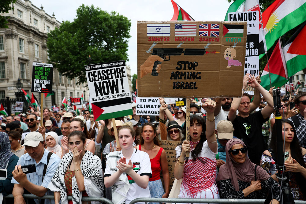 Pozivali su britansku vladu da "prestane da naoružava Izrael" i izrazili strahovanje od zaostrašvanja na čitavom Bliskom istoku zbog rata Izraela i protiv Irana.