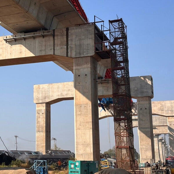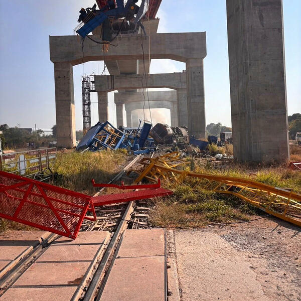 Projekat brze pruge, jedan od nekoliko koji se grade u Tajlandu, podizan je iznad postojeće željezničke pruge. Dio srušenog krana i dalje je poduprt stubovima izgrađenim da nose novu željezničku vezu.