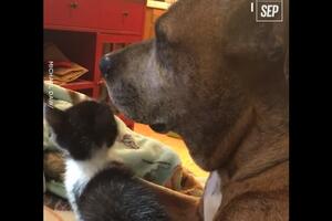 Pogledajte kako pitbul reaguje na radoznalo mače