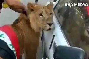 Pogledajte: Muškarac na proteste u Iraku došao sa lavom