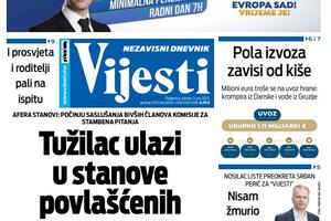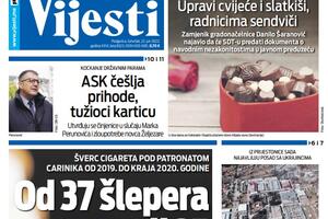 Naslovna strana "Vijesti" za 19. januar 2026.