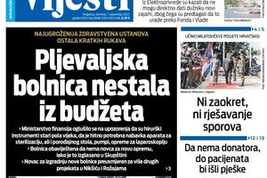 Naslovna strana "Vijesti" za 9. oktobar 2025.