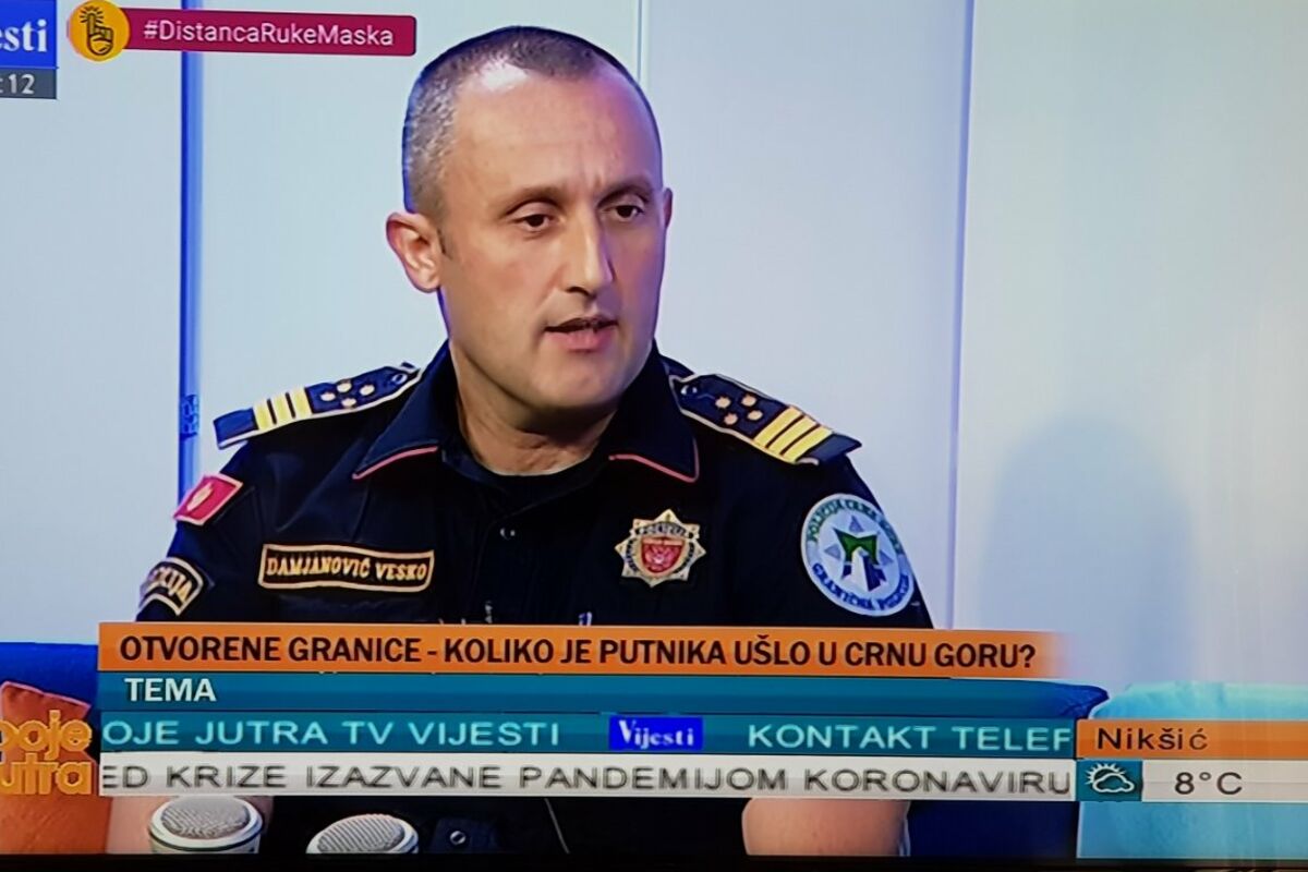 "Od 1. do 4. juna u Crnoj Gori promet stanovništva je bio 30.000, a to obuhvata ulaz i izlaz iz države. Polako se vraćamo u redovno stanje. Najviše putnika ušlo je iz Bosne, Albanije i Hrvatske. Za ova tri dana zabilježena su 600 prijava boravaka stranih državljana. Kako se bude normalizovano stanje i otvarale granice prema svim država protok putnika biće sve veći, rekao je gostujući u „Bojama jutra“, pomoćnik direktora za Sektor granične policije Vesko Damjanović.