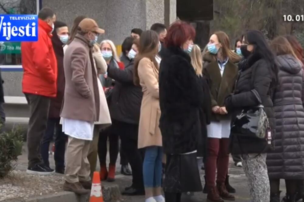 Sabprotesta nemedicinskih radnika KCCG, Foto: Screenshot/TV Vijesti
