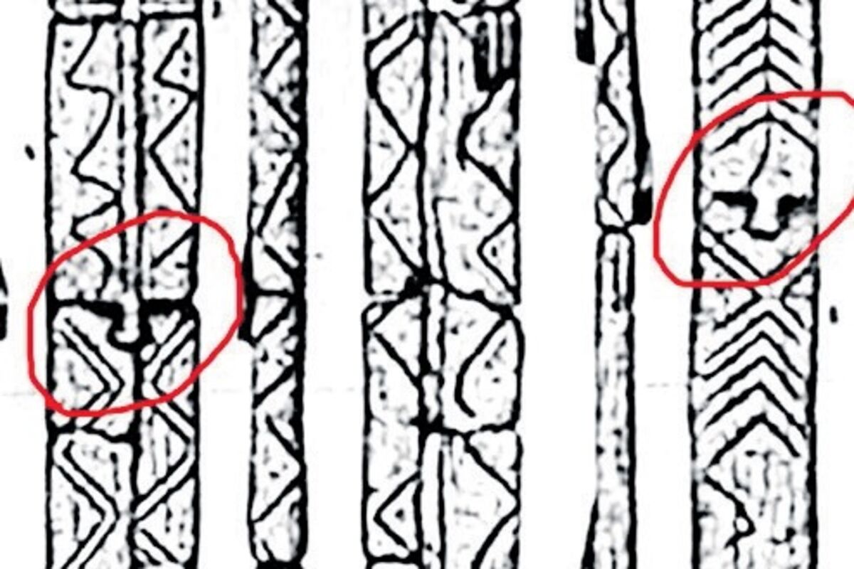 Na idolu napravljenom od drveta četinara i obrađenom drvenim alatima, izrezbarene su figure sedam ljudi (vjerovatno slovenskih bogova) i okružene simbolima, a jedna od njih je trodimenzionalna i predstavlja slovenskog boga Triglava.