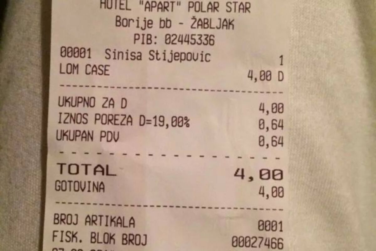 Račun je prije dvije večeri dobio jedan od gostiju hotela, što se može vidjeti na fotografiji koja je objavljena na Facebook stranici Lice Crne Gore.