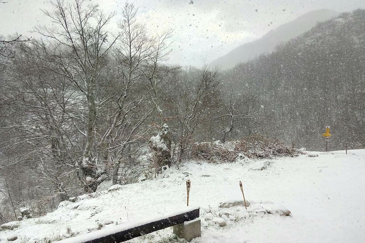 Kod planinarskog doma Za Vratlom, temperatura je +4 stepena, a snijeg je obijelio okolinu.